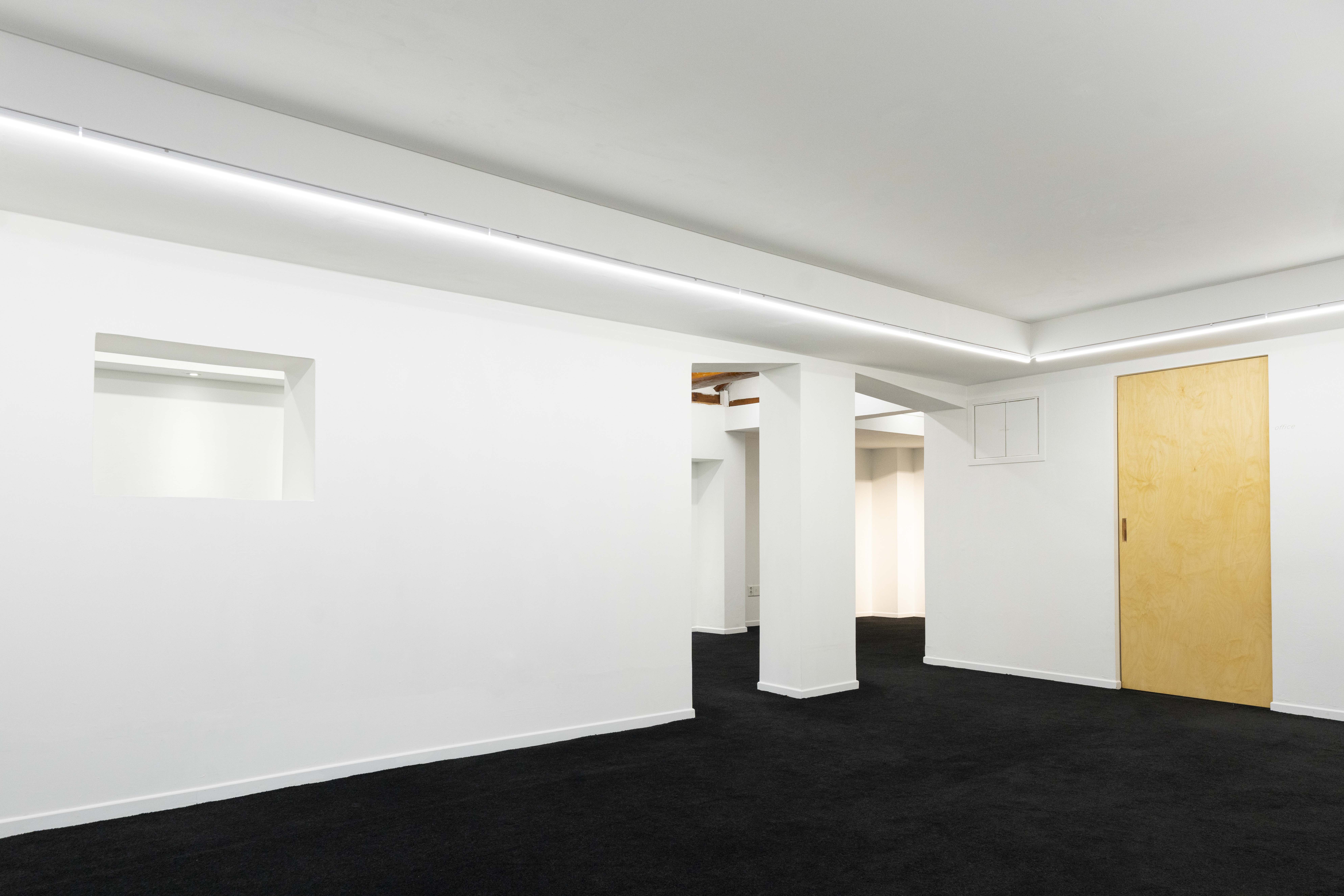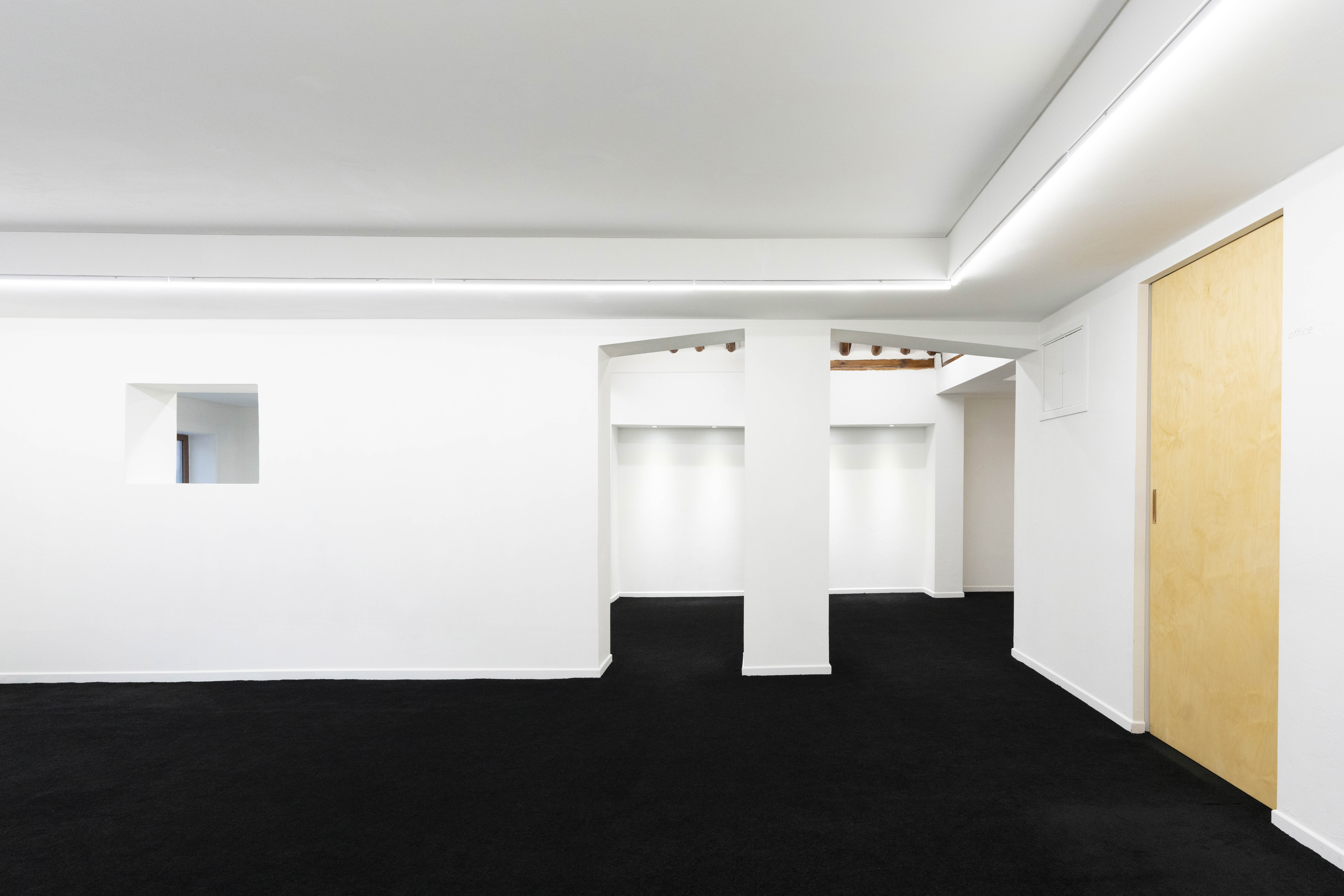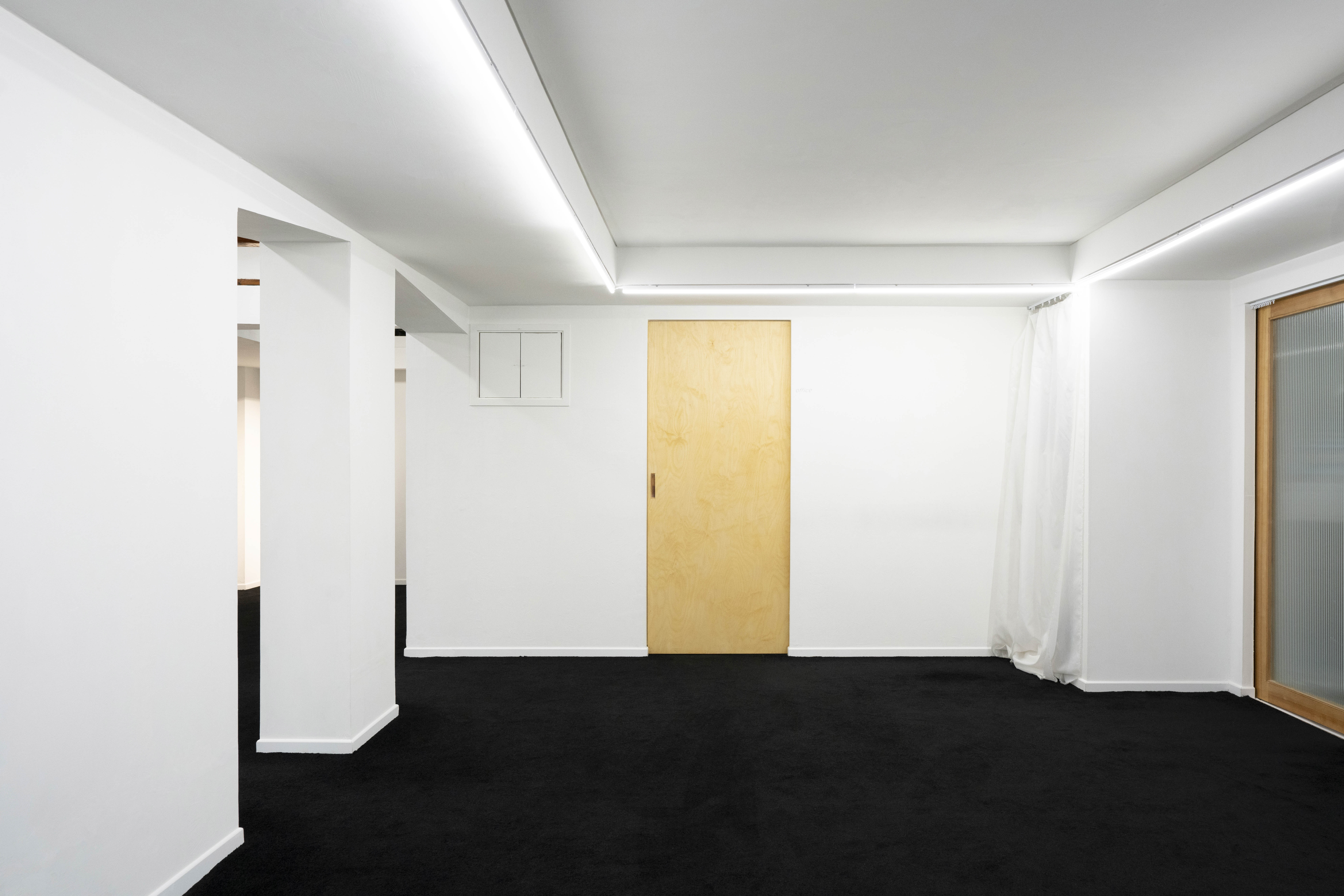 Space Uooyoung operates similarly to a traditional Korean home, where visitors are required to remove their shoes before entering the exhibition area. The floor is covered with a durable black carpet, which, however, is susceptible to heat and stains. Therefore, any installation that may affect the carpet must be discussed in advance.